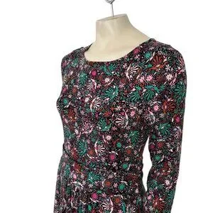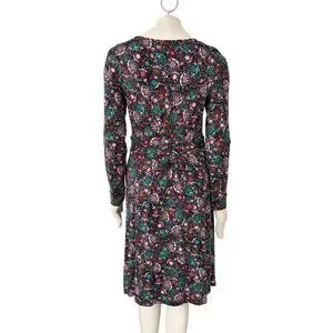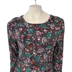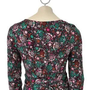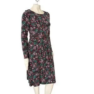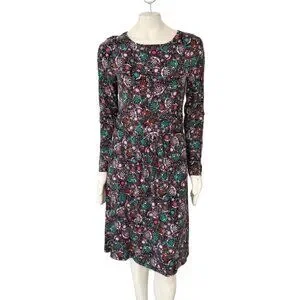 BODEN Abigail Long Sleeve Jersey Dress in Black Florals SZ 8
