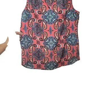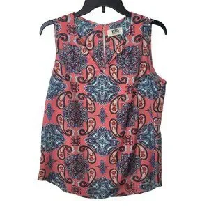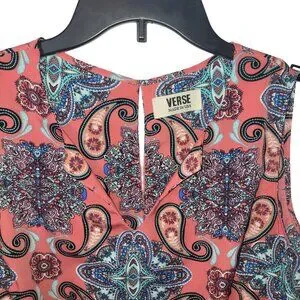 VERSE Sleeveless Coral Paisley Print Blouse With Split Neck Design Size M