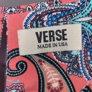 This sleeveless coral blouse by Verse features an intricate paisley pattern in vibrant hues of blue and purple. Its lightweight fabric ensures comfort, while the split neck design adds a modern touch. Perfectly suited for casual outings or semi-formal settings, this top effortlessly combines elegance and ease for all-day wear.