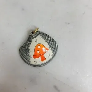 Handpainted Shell Mushroom Pendant Orange Cottagecore Woodland Jewelry Whimsical