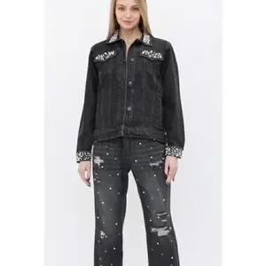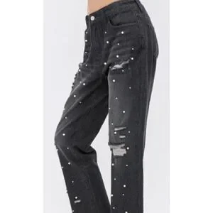 Vocal PEARL EMBELLISHED FRONT RIPPED JEANS Med NWT
