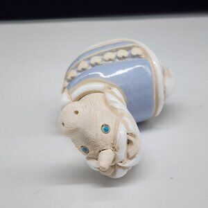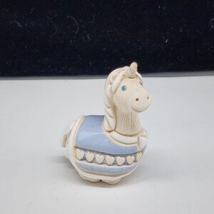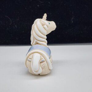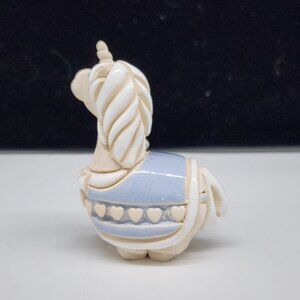 This Artesania Rinconada Unicorn Figurine is a vintage collector's item, adorned with blue hearts. Standing at 3.25" tall, it adds a beautiful, nostalgic touch to any collection or display.