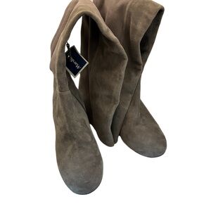 NWT stunning pair of Cole Haan Elnora over the knee suede boots in grey Storm Cloud color.