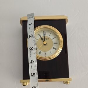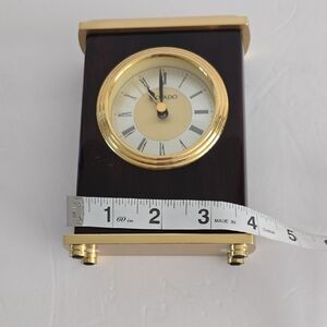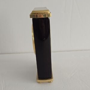 Sophisticated wall clock with gold accents. Dark brown finish adds luxury. Perfect for any room.