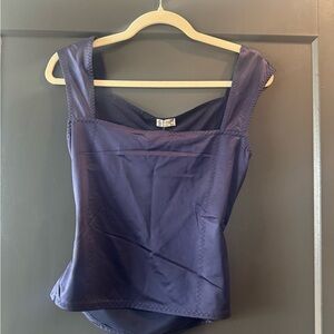 Satin-like sleeveless crop top. Square neckline with wide straps. Fitted silhouette with subtle seam detailing. Smooth, slightly lustrous finish. Versatile dress-up piece.