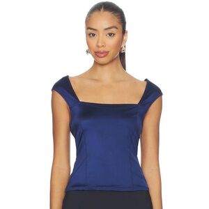 Free People Sleeveless Square-Neck Crop Top in Deep Navy