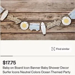 Celebrate with the Baby on Board Decorations for baby showers, this banner features neutral colors and surfer icons, adding a charming touch to your ocean-themed party.