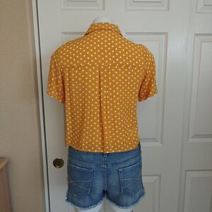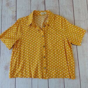 Love Notes crop polka dots button front short sleeve blouse sz S