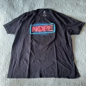 Threadless Black T-Shirt with Red and Blue 'NOPE' Neon Graphic