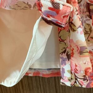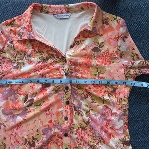 PrettyGarden: Button-down Blouse, Size L, Coral/Lilac/Yellow Floral