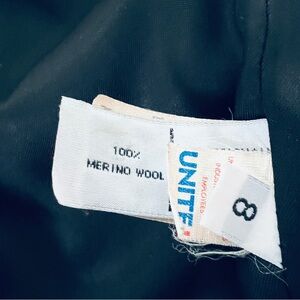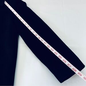This gorgeous 100% merino wool short “walker” style union-made Calvin Klein coat features a single breasted five-button front closure and two front slash pockets. It is fully lined.