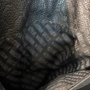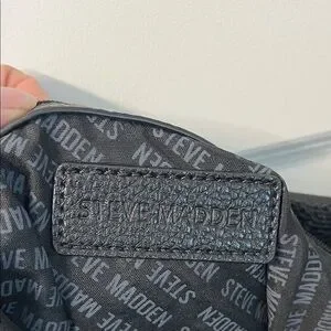 Classic black Steve Madden crossbody with an adjustable strap. Smooth textured exterior and understated metal logo plaque. Compact, versatile silhouette for everyday use.