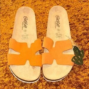 Experience comfort and style with these vibrant orange Birkenstock sandals. Perfect for any casual outing.
