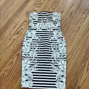 Express Black & White Floral Striped Strapless Bodycon Dress Size 4