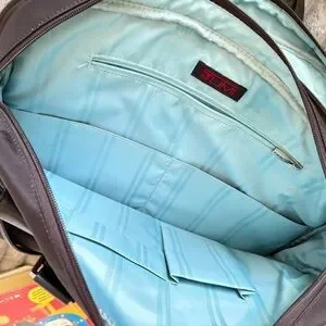 Tumi black nylon with leather trim laptop tote bag Portfolio Brief aqua interior.