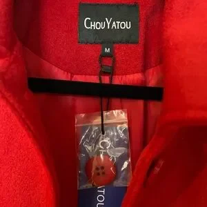 Step out in style with this chic red pea coat. Perfect for adding a pop of color to your wardrobe.