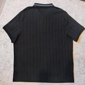 NWT XL Michael Kors Black Tone-on-tone Vertical Textured Stripe Knit Polo Shirt