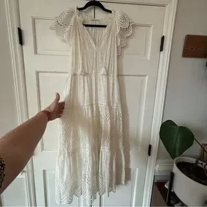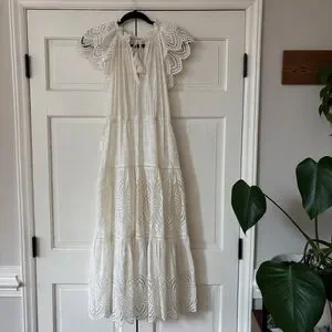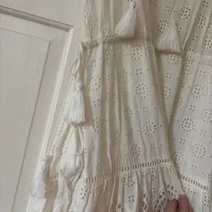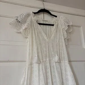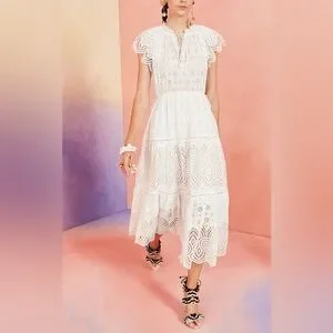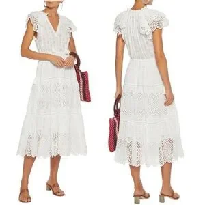 Ulla Johnson Gianna White Eyelet Midi Dress Size 0 XS Tiered Tasseled Boho Bride