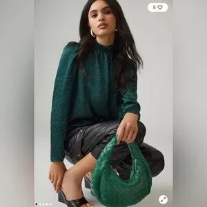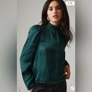 EUC size Medium Anthropologie Self Contrast Puff sleeve blouse