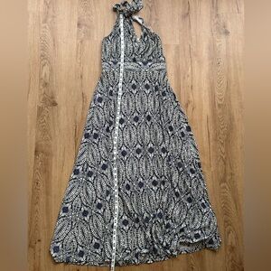 LASCANA Navy Sand Printed Halter Maxi Dress NWT Small Boho Beach Resort Viscose