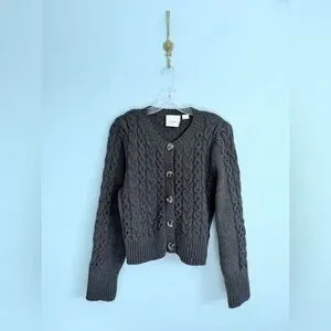 Maeve Anthropologie Cable Knit Cardigan Sweater, Charcoal Gray