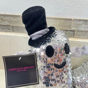 NEW Christian Siriano Silver Disco Ball Stuffed Ghost Couple Figurine with Velvet Black Hat and Bow Halloween Decor