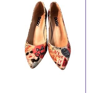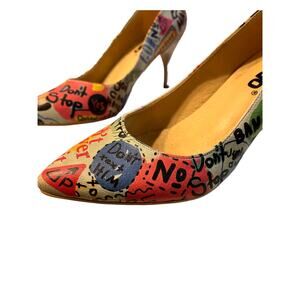 DOGO Vegan High Heel Shoes Cartoon And Slogans Print Women's Size 7
