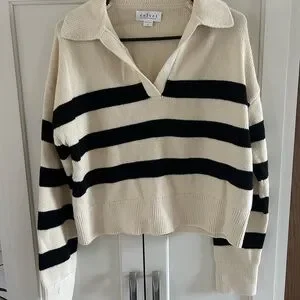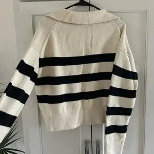 Perfect Condition Velvet Women's Striped Black and Cream Sweater