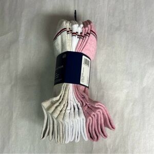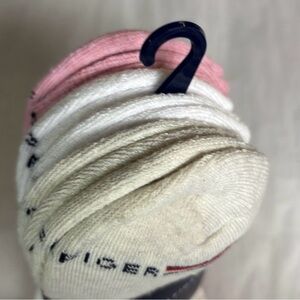 Experience comfort and style with Tommy Hilfiger's tan, white and pink women’s socks. Perfect for everyday wear. This is a brand new with tags package of 6 pairs women’s one size tan, white and pink cushion no show socks. These socks come from my pet free, non smoking home.