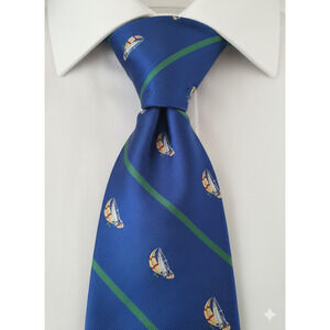 Lands End blue nautical sailboat silk tie - 61"