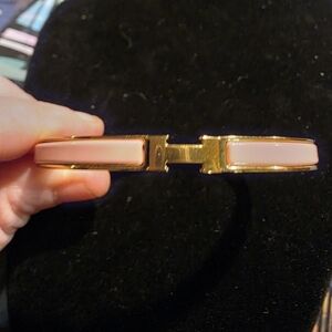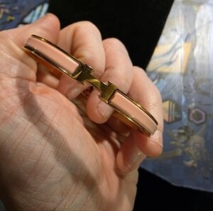 USED.. .Gold and Pink Enamel Hermes Bangle