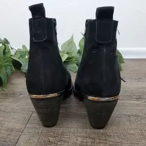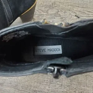 Steve Madden Ankle Boots Wantagh Booties Distressed Nubuck Suede Black Gold Boho