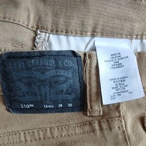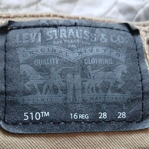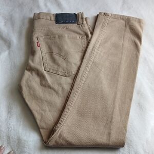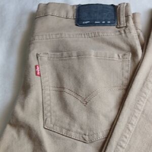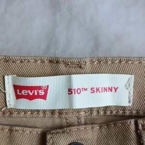 Levi's skinny jeans in a neutral beige-tan shade. Classic five-pocket design with button-and-zip closure. Clean, versatile look for everyday wear.