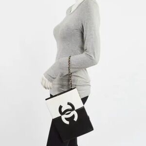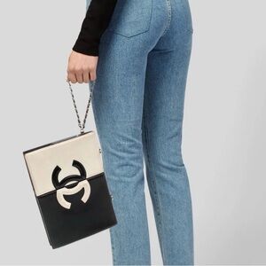 Chanel Bicolor Split Clutch Bag Two-Tone Black and White Clutch ❤️