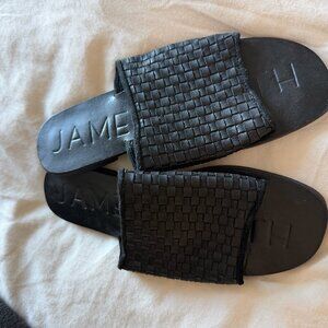 JAMES SMITH WOVEN SLIP ON SLIDES IN BLACK LEATHER