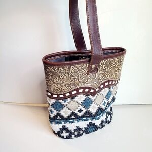 Myra Bag Western Tooled Leather Tote Bucket Wine Bag Leather Handle