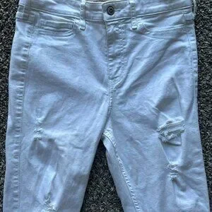 Hollister white high rise skinny ripped jeans #rippedjeans #skinnyjeans