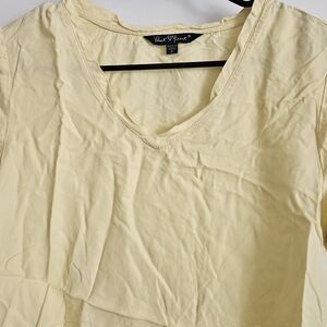 Elevate your casual wardrobe with this stylish yellow V-neck top. Perfect for any occasion, this top offers both comfort and style.