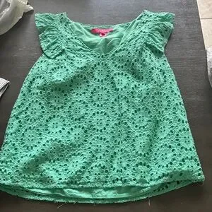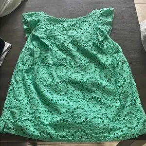 Lilly Pulitzer Teal Green Top with Eyelet Stitch Design