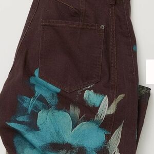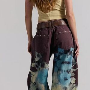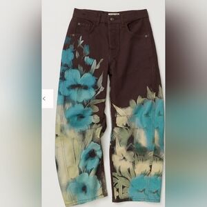 We The Free brown barrel jeans with a vibrant blue floral print, size 25, nwot, check out other sizes in our closet