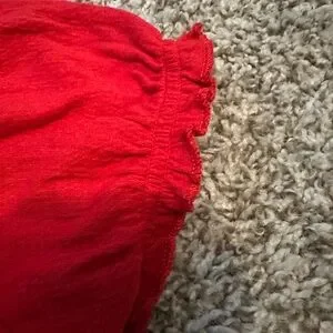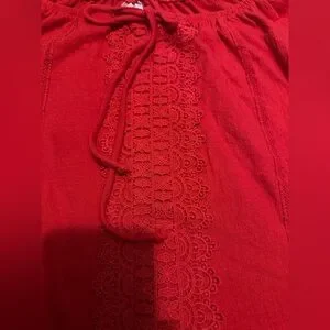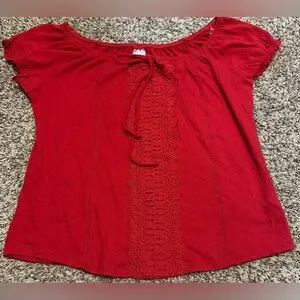 Add a romantic, bohemian touch to your wardrobe with this vibrant red peasant top by No Boundaries. Featuring delicate lace trim along the neckline and hem, this top offers a flattering off-the-shoulder silhouette with breezy short sleeves.