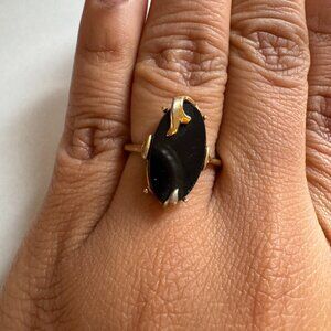 Vintage 70s Avon Night Flower Onyx Gold Ring Approx Size 8