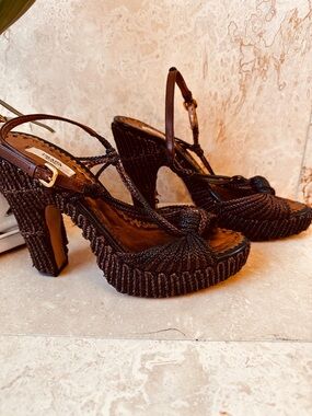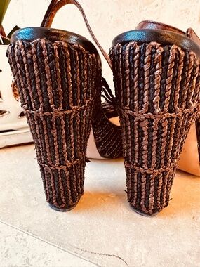 Prada Braided Raffia Slingback Heels