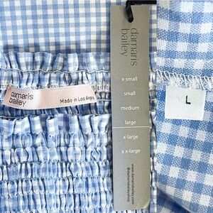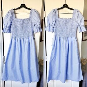 Damaris Bailey Azul Dress Smocked Puff Sleeve Midi Gingham Blue Large NWT