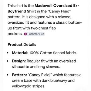 NWOT Madewell Oversized Ex-Boyfriend Shacket in “Caney Plaid” Pattern.