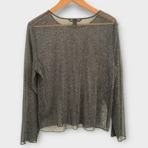 NWT Victoria’s Secret Sheer Glitter Sparkle Mesh Long Sleeve Top Blouse Sz M/L