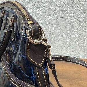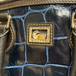 Dooney & Bourke Double Pocket Satchel Dillen in Blue Croc Embossed Leather