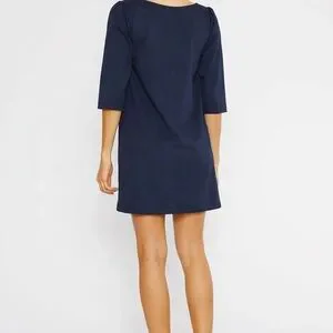 Effortless shape, everyday chic. Timeless and versatile, this dress features a softly tailored A-line silhouette with ¾-length sleeves, a wide neckline, and a flattering above-the-knee length.