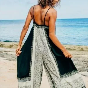 Free People Hazel Jumpsuit Mixed Print Wide Leg Oversized Size XS