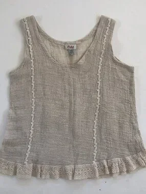 A Vintage 90s Lace Linen Blouse Tank Top Size Large